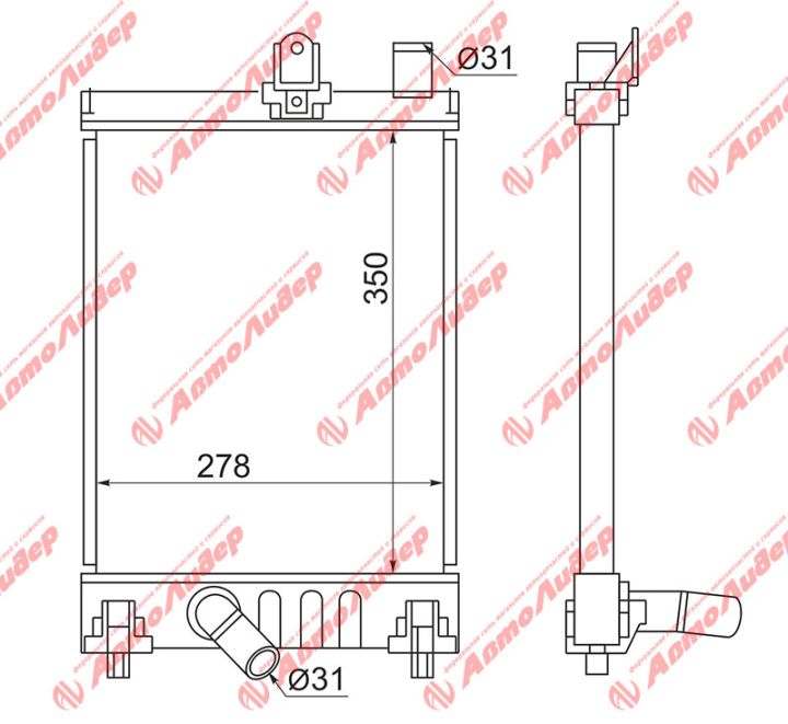 Радиатор охлаждения /AUTOLEADER для Toyota Hiace Regius Ace 2004-2013 /без крышки; TY-KDH200S-1226; (TY0010-KDH200S) 1651030010 1651030011 TY0010KDH200S