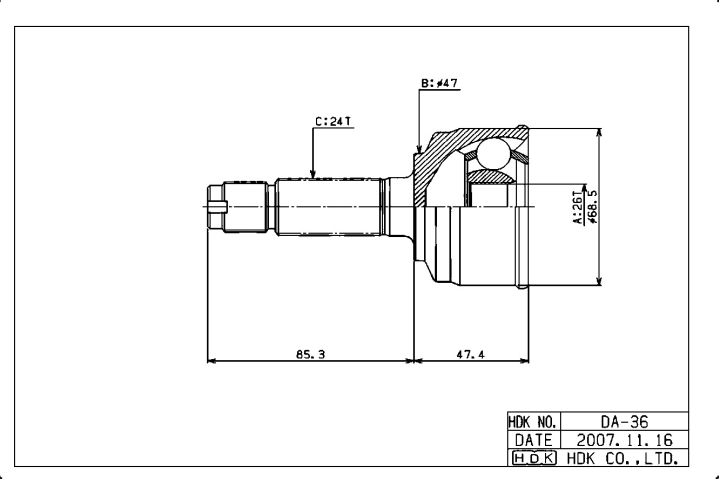ШРУС наружный /правый /левый HDK для Daihatsu Mira Gino 2004- Move 2002-2006 Tanto 2003-2005; 26*47*24; DA-036; (TG-2836) 43410B2041 43410B2342 43420B2031