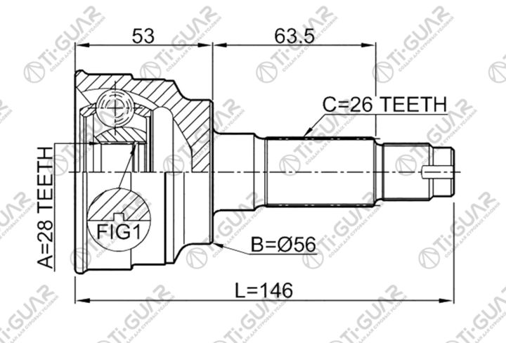 ШРУС наружный /передний левый /правый /TI-GUAR для Mazda Familia 1998- BJ8W 1.8L BJ8WF PREMACY (CP8W) ; 28*56*26; TG-6834; (TG-6834Z44 0510-034A44 MA034A44) MA034 FD542560XA